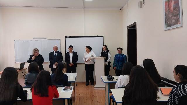 Təqdimatda Fakültə dekanı dos Əjdər Əsgərov, Tədris işləri üzrə dekan müavini, b/m Məleykə Aslanova Rus dili kafedrasının müdiri dos Kəmalə Əhmədova, Fransız dili kafedrasının müdiri dos Məhərrəm Orucov iştirak etmişlər.