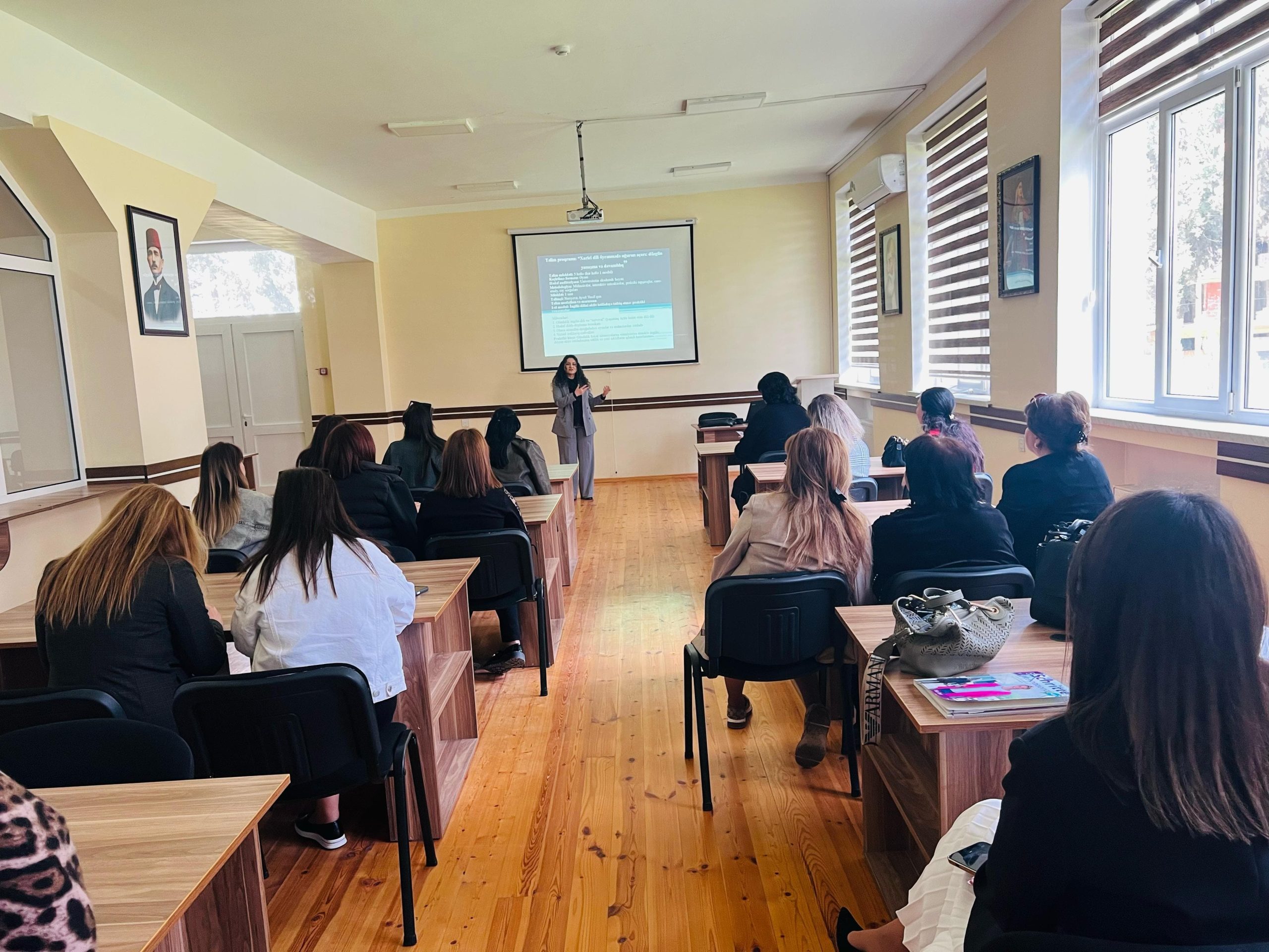 01 may 2025-ci il tarixdə Gəncə Dövlət Universitetinin akademik heyəti üçün dörd moduldan ibarət olan “Xarici dili öyrənmədə uğurun açarı: düzgün yanaşma və davamlılıq”adlı təlim proqramının ilk mərhələsi baş tutdu. Proqramın “İngilis dilini aktiv istifadəyə tətbiq etmə: praktiki yanaşmalar’’ adlı ilk modulunun təqdimatı Praktik xarici dillər kafedrasının müəllimi Aysel Nuriyeva tərəfindən keçirildi.