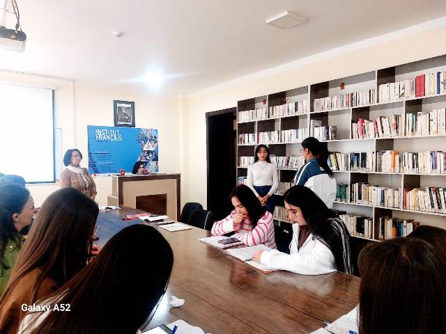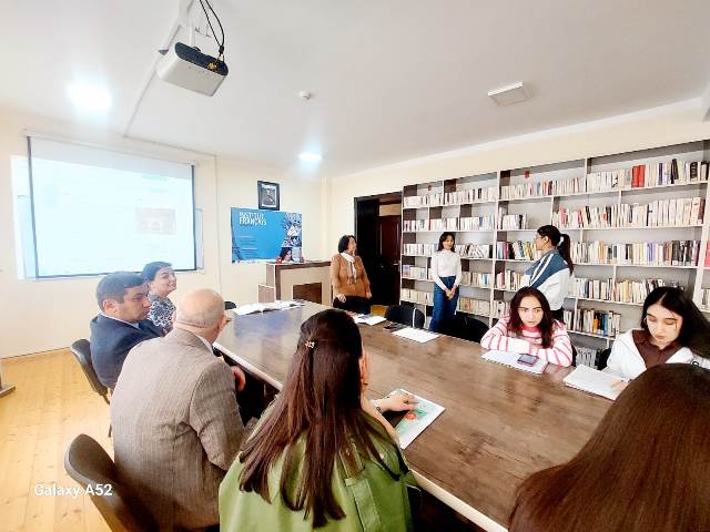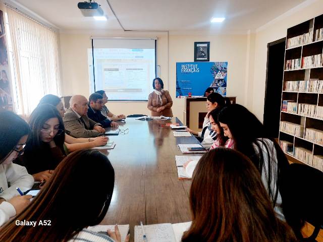 26.11.2025-ci il tarixində, Fransız dili kafedrasının baş müəllimi Z.Huseynovanın “ingilis dili müəllimliyi” ixtisası 2/1 kursda XDİAK (Xarici Dildə İşgüzar və Kommunikativ Kommunikasiya -fransiz dili) fənnindən acıq dərsi olmuşdur. Dərsin mövzusu “Dəb və rənglər” idi.Tələbələr mövzuya aid dialoqları səhnələşdirdikdən sonra evə verilən qrammatik tapşırıqlar yoxlanıldı. Buraxılan səhvləri müəllim səbrlə izahat verildi.Yeni dərsin mövzusu “Les repas”(Yeməklər) adlanırdı. Power Point proqramı ilə yığılmış slayd dərs tələbələrə yeni materialın asan və tam mənimsənilməsi üçün kifayət etdi.Açiq dərsdə dekanlığın nümayəndələri və kafedra üzvləri iştirak etdilər.