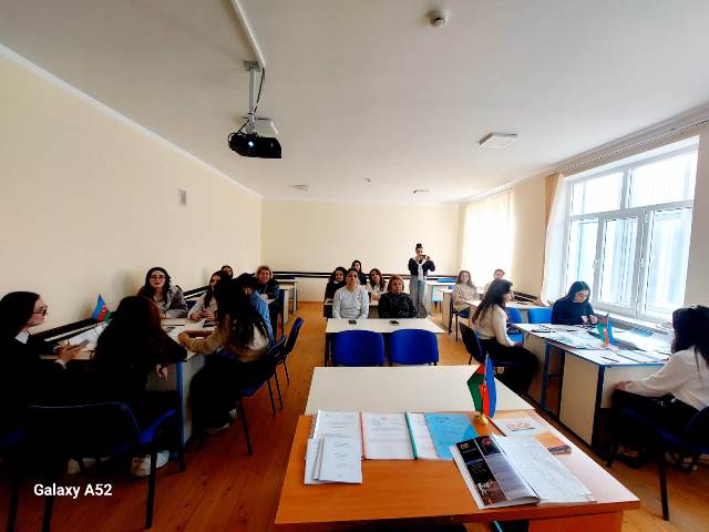 08.12.2025 ci il tarixində Leksika və ölkəşünaslıq kafedrasının müəllimi Nesibova Bahar Telman qızı tərəfindən Ingilis dili müəllimliyi ixtisasinin ıı kursunda “Xarici dil bacarıgı” fənnindən açıq praktik məsğələ dərsi kecirilmişdir. Dərsin mövzusu “Ölkə və dünyanı sarsıdan hadisələr”olmuşdur.