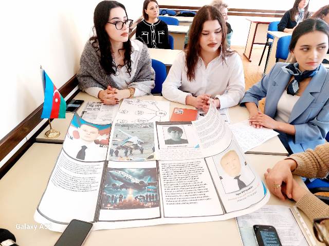 Müəllim açıq dərsin əvvəlində Hökümə Əliyevanın obrazı əsasında bas vermis təyyarə qəzasını əks etdirərək mövzuya giris etdi.