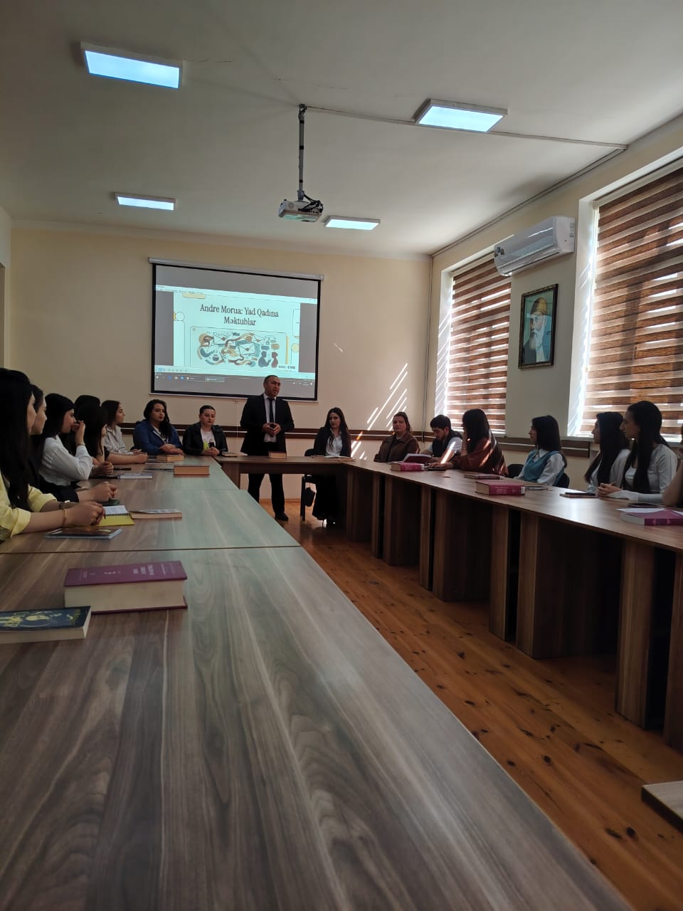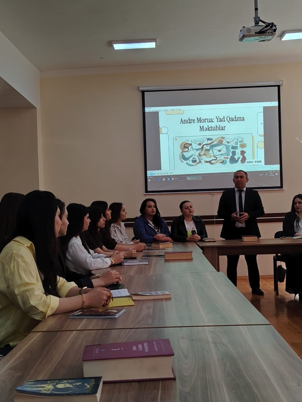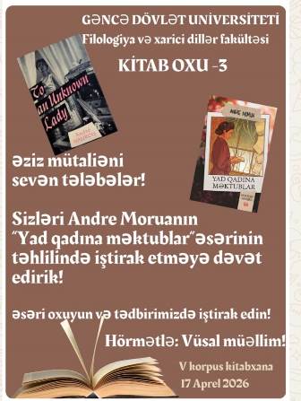 Filologiya və xarici dillər fakültəsində Azərbaycan və dünya ədəbiyyatı kafedrasının müəllimi Vüsal İsgəndərovun moderatorluğu ilə Tələbə Mütaliə Klubunun növbəti məşğələsi keçirilmişdir. Tələbələr fransız yazıçısı Andre Moruanın “Yad qadına məktublar” əsərini müzakirə etmiş, fikir və mülahizələrini bölüşmüşlər.